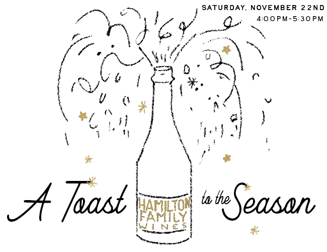 Join us on Saturday, November 22nd from 4pm-5:30pm for a pre-dinner sparkling soirée at Hamilton Family Wines — a cozy, elevated evening of sparkling wine, seasonal bites, and holiday cheer.